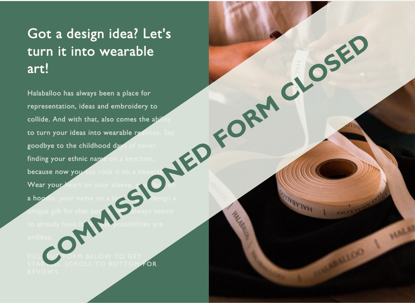OUR COMMISSIONED REQUEST FORM IS CURRENTLY CLOSED: